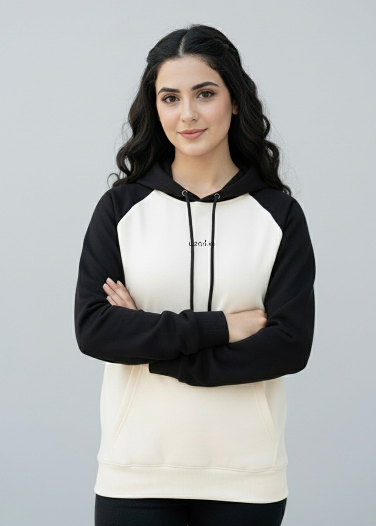 Beige/Black Raglan Hoodie - Premium Cotton Fleece