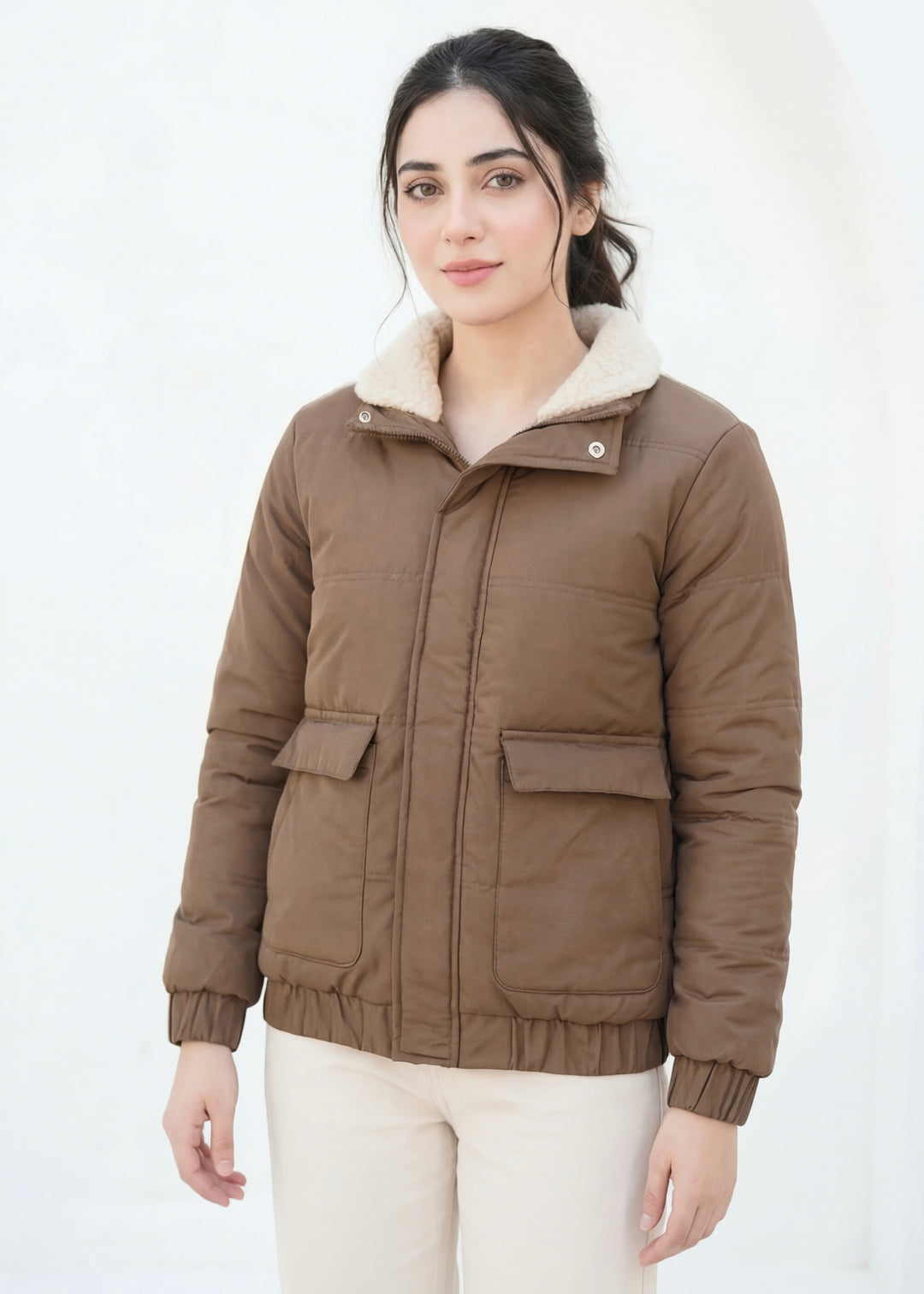 Creme Brown Bomber Jacket - Kids