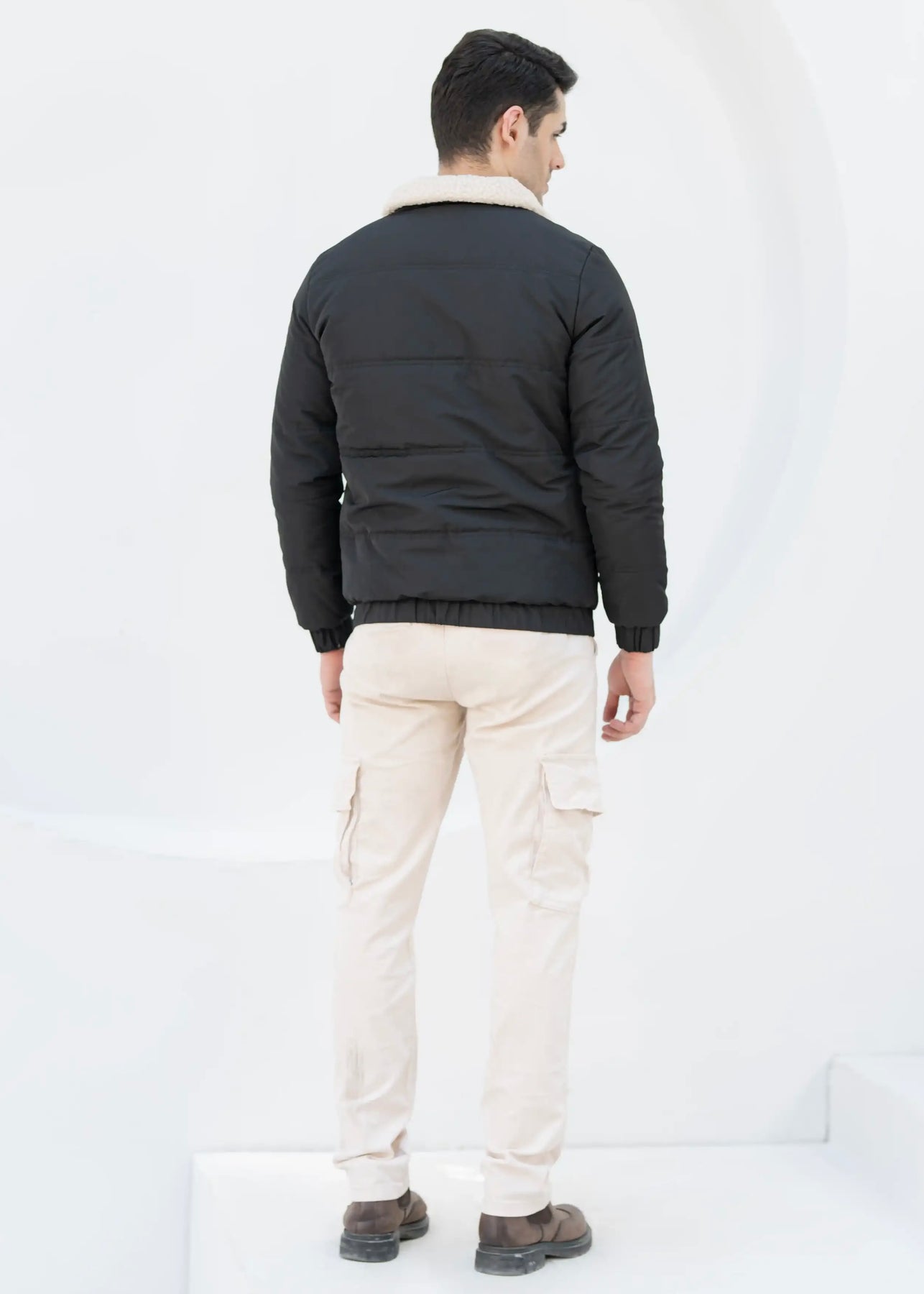 The Solid Sherpa Shield Jacket in Black offers exceptional warmth and durability with its premium sherpa lining and sturdy outer shell. Designed to protect against cold and wind, this jacket combines functional insulation with a sleek, minimalist look. Ideal for harsh weather conditions, it ensures comfort and long-lasting wear while maintaining a refined silhouette suitable for both outdoor activities and urban settings.