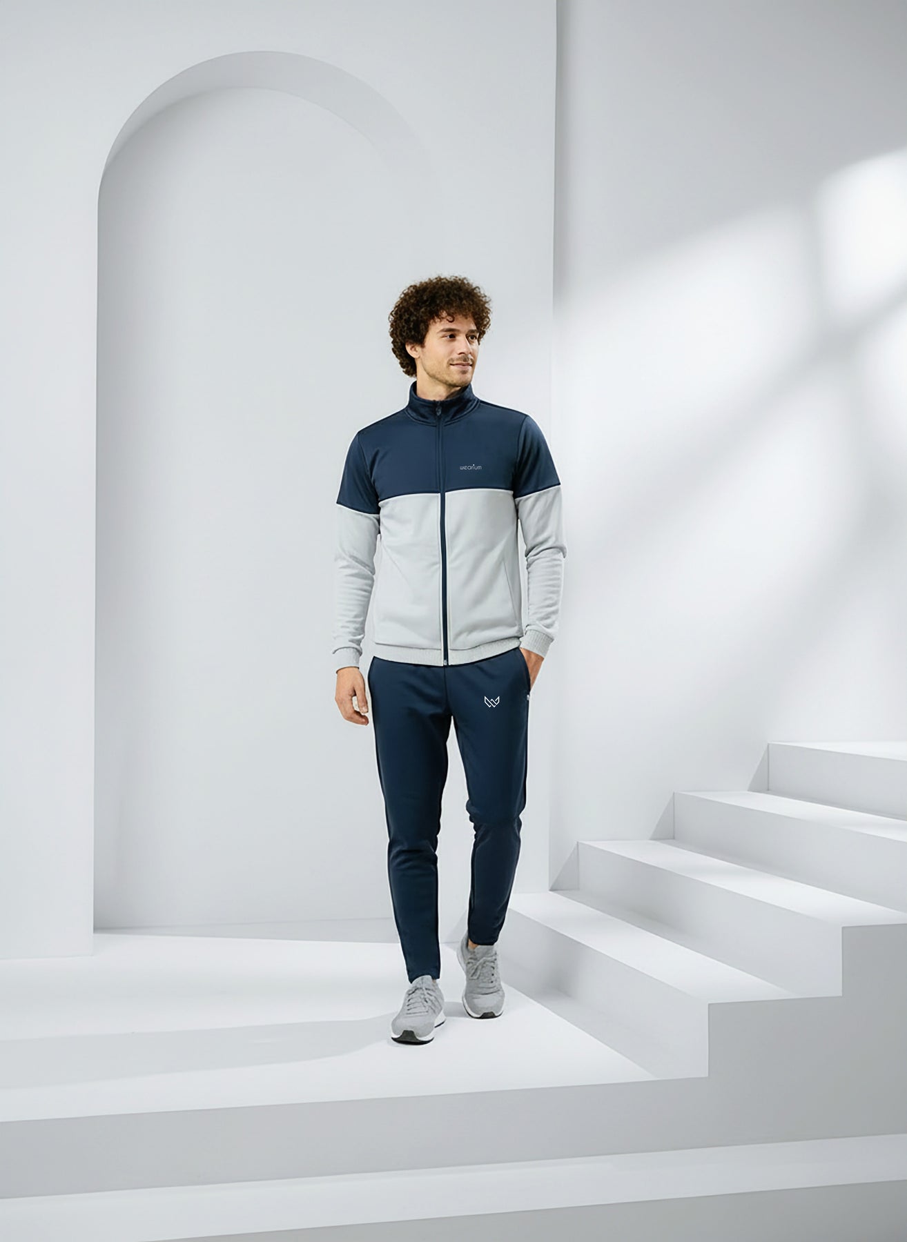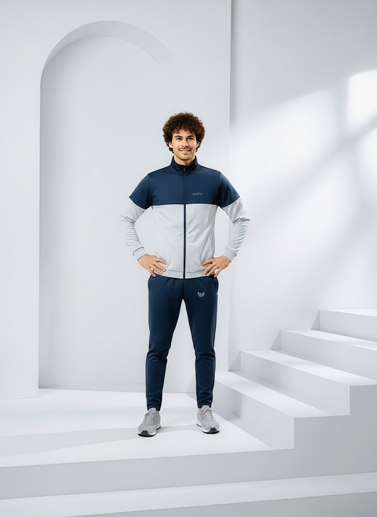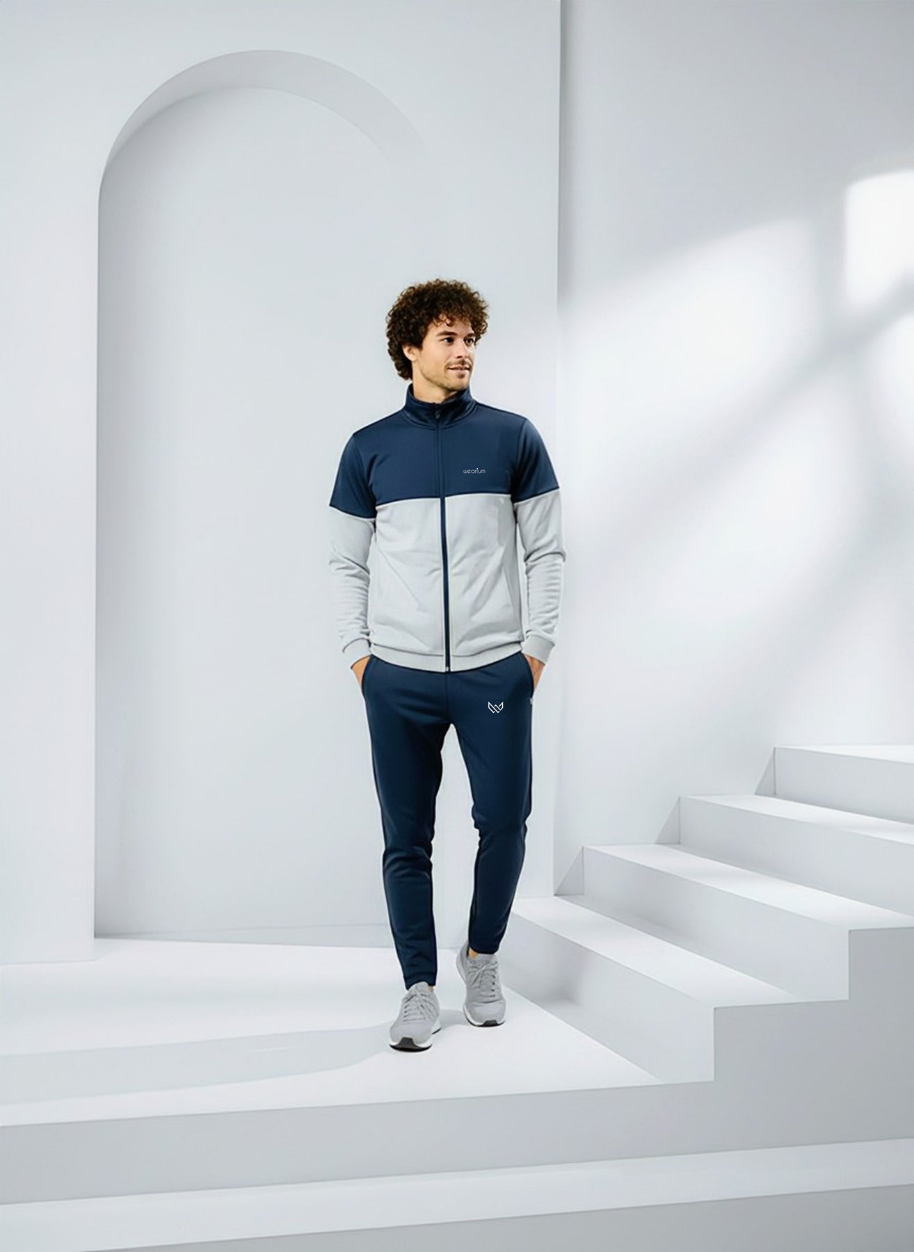 # Arctic Navy Winter Tracksuit Engineered for cold-weather performance, this winter tracksuit combines technical fabric construction with contemporary styling. The coordinated jacket and pants deliver superior insulation while maintaining a streamlined silhouette. Designed with practical features including secure pockets and adjustable closures, it transitions seamlessly from outdoor activities to casual wear. The navy colorway offers versatile coordination with your existing wardrobe. Premium materials ensure durability through repeated wear and washing, making this an investment piece for your seasonal rotation.