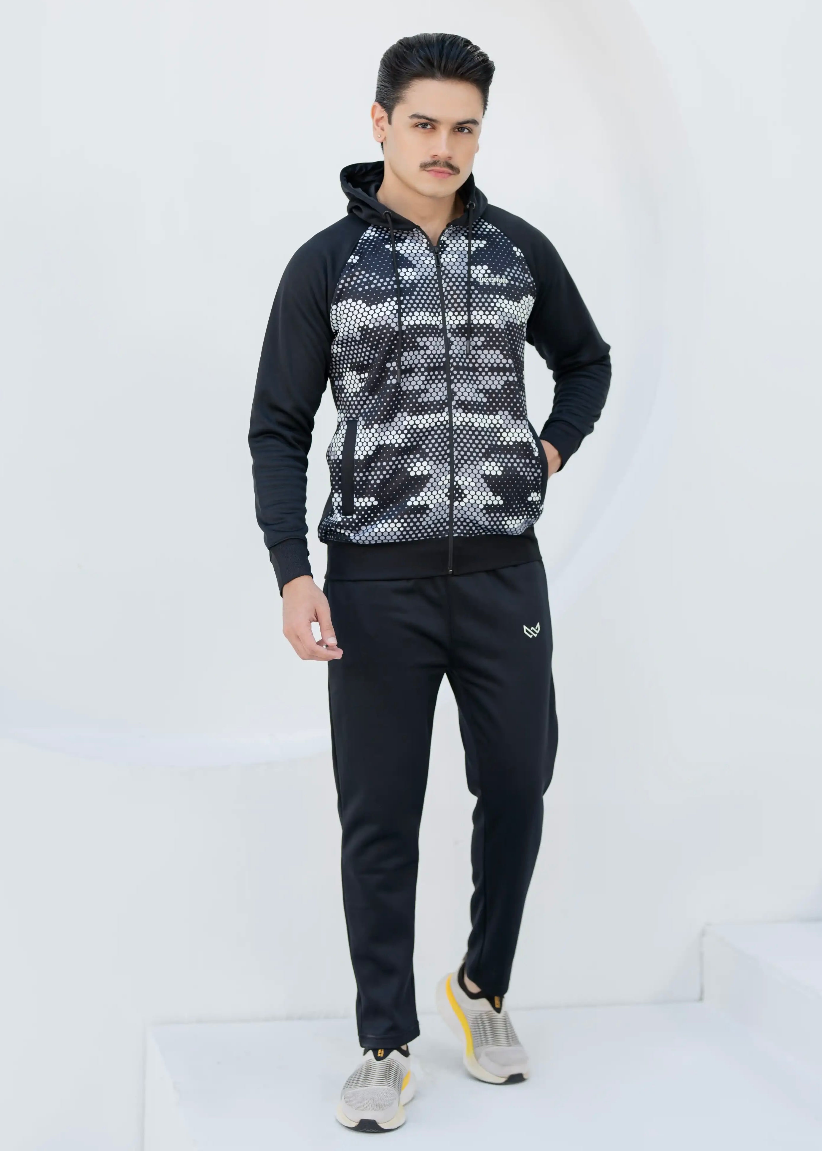 Cool, Elegant appearance & soft feel export fabric with combination of colors can be a description of our Active Streetwear Tracksuit - Silver/Black. It presents a cozy look to be wear in winters.